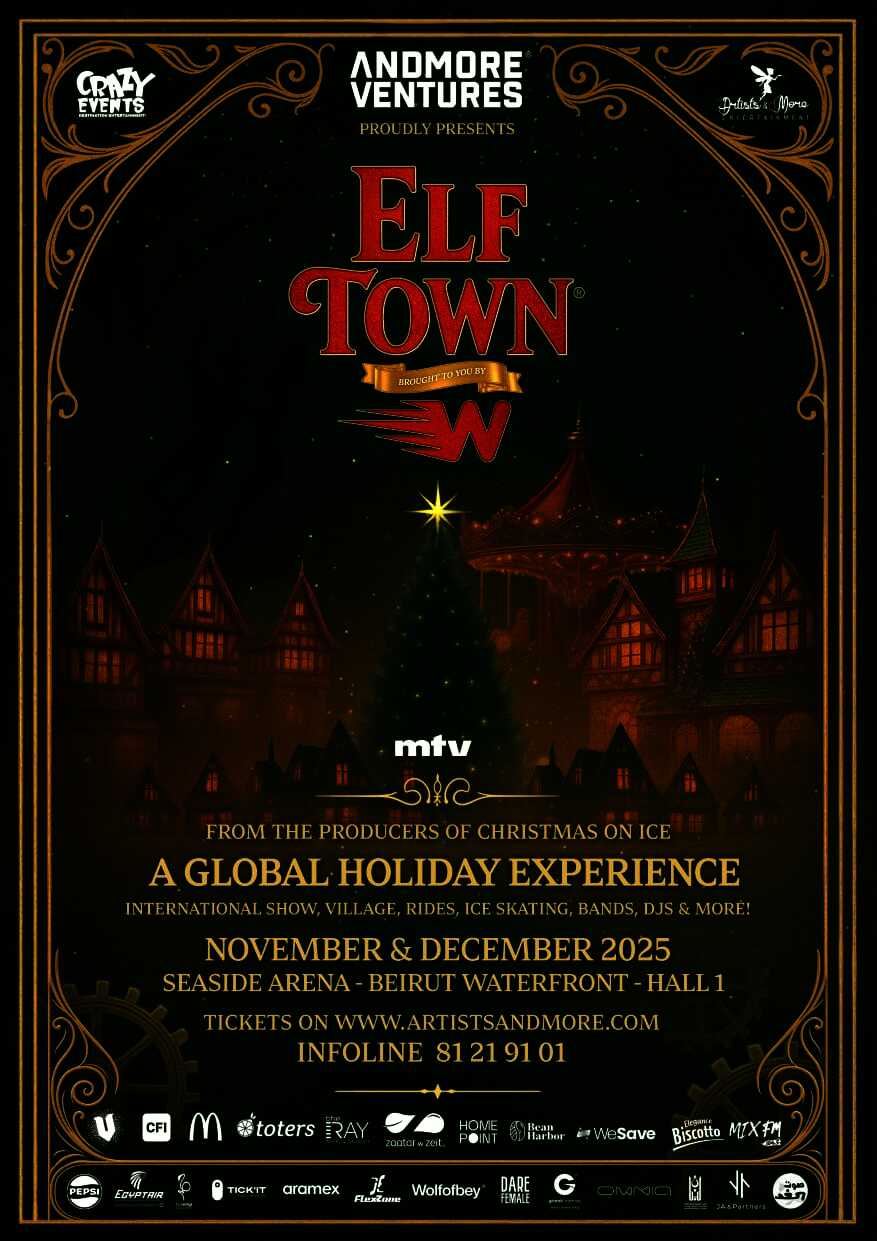 استعدوا لأكبر قرية ميلادية في لبنان على الإطلاق (Elf Town) من 23 نوفمبر وحتى 23 ديسمبر، ستنقل العائلات والأصدقاء وعشاق الأعياد إلى تجربة احتفالية تمتد على مدار شهر كامل من الفرح والبريق والدهشة كما لم يحدث من قبل.