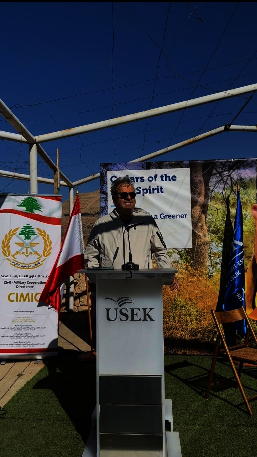 أمّا عميد كليّة الهندسة في الجامعة البروفسور جوزف أسد فشكر، في كلمة ألقاها باسم رئيس الجامعة الأب جوزف مكرزل، جميع الذين ساهموا في هذا النشاط. وقال: "لسنا هنا لنزرع شجرًا فقط، بل لنزرع قيمًا. فكلّ شتلة نزرعها في الأرض هي رمز للاستمراريّة والانتماء، وترسيخ لرسالة الجامعة التي تضع البيئة في صلب مشاريعها". وأضاف: "نجتمع في صنين الشاهد على صمود بلدنا وتاريخه وقدرتنا على الوقوف، يومًا بعد يوم، على الرغم من الصعاب كلّها، وأكرّر ما قاله رئيس الجامعة في يوم تنصيبه عن أنّ الجامعة ليست فقط لتُعَلّم بل لتبني جسورًا بين الإنسان وربّه، بين المعرفة والقيم، وبين الحاضر والمستقبل. وفي هذا اليوم، أتينا لنبني جسورًا بين الإنسان والطبيعة، ولنؤكّد بأنّ العلاقة مع الجامعة لا تنتهي في يوم التخرّج بل تكبر وتستمرّ وتتجدّد من خلال خرّيجيها". ويُشكّل هذا النشاط تقليدًا سنويًّا للجامعة، يعزّز من دورها البيئي كما من الرابط بين الجامعة وخرّيجيها.